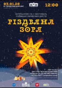 03 січня 2026 року Зразковий аматорський ансамбль народного танцю “КВІТИ УКРАЇНИ” Ніжинської хореографічної школи, на запрошення відділу культури і туризму Переяславської міської ради, взяв участь у V фестивалі різдвяно-обрядових дійств “РІЗДВЯНА ЗОРЯ”, що відбувся в Будинку культури КЗ “Переяславський центр культури і мистецтв”.