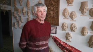 У музеї Довженка в Сосниці, що на Чернігівщині, експонують колекцію глиняних масок героїв повісті “Ніч перед Різдвом” українського письменника Миколи Гоголя. Як розповів Суспільному автор робіт Анатолій Семенцов, що під час виготовлення масок він спеціально не користується Інтернетом чи готовими зображеннями, щоб образ і характер персонажа створювала лише його уява.