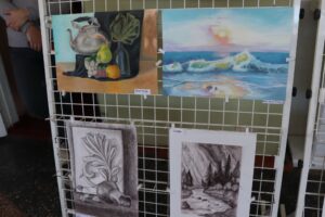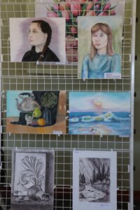 Тут 16 робіт, виконаних в різнопланових техніках: гуаш, пастель, акварель, сепія, пастель суха, натюрморт з натури, пейзаж-копія.